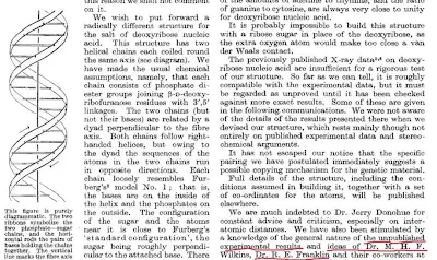 η προαναφερθείσα διαλεύκανση της δομής του DNA που έθεσε τα θεμέλια ανάπτυξης