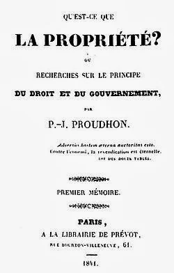 propriete? Recherche sur leprincipe du droit et du gouvernement», 1840).